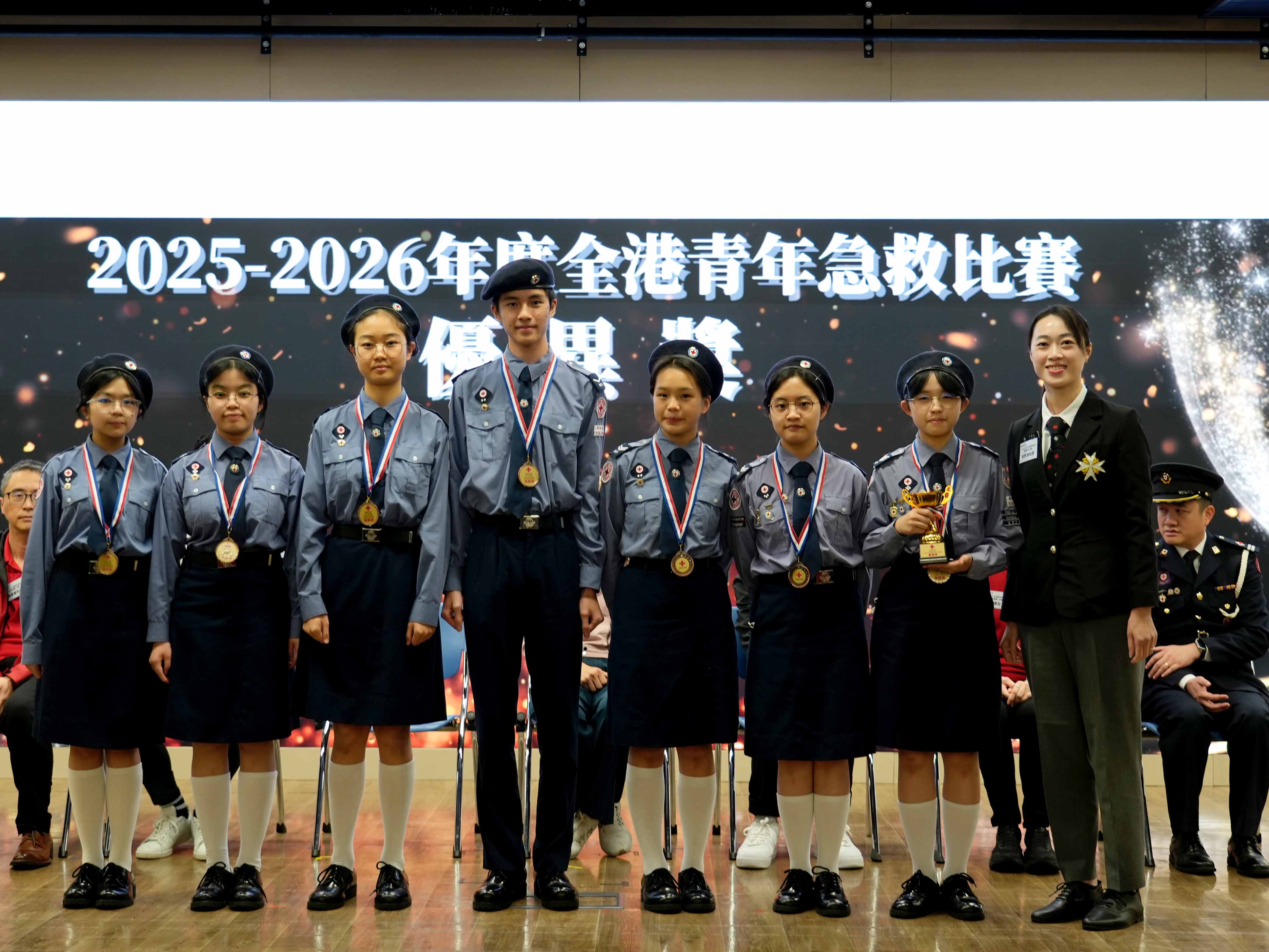Congratulations to our Red Cross Youth Unit (Youth Unit 66) for their outstanding performance in the 2025-2026 Hong Kong Red Cross Youth First Aid Competition (Hong Kong Final). The team earned the Champion title in the First Aid Challenge 2 and the Overall Merit Award, showcasing their exceptional first aid skills and teamwork.